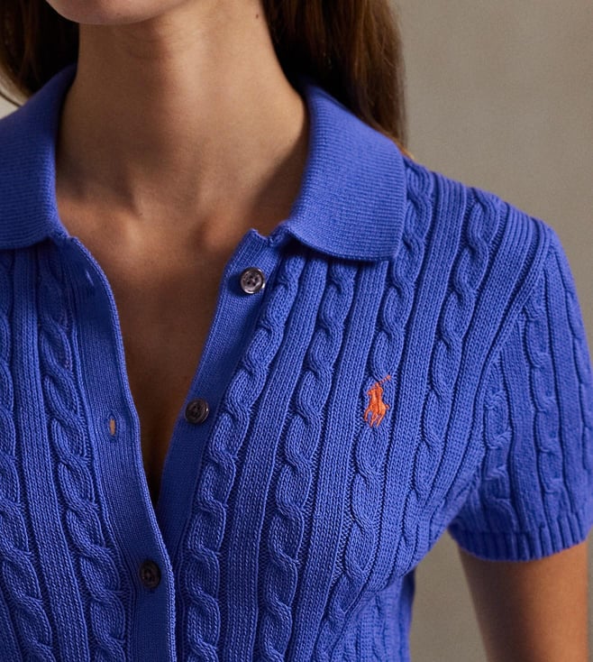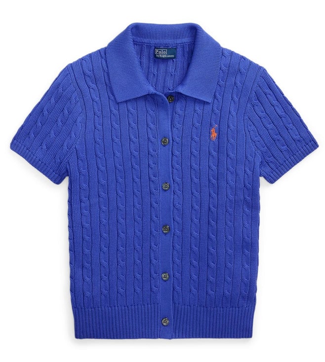 Polo Ralph Lauren Blue Woven Design Regular Fit Cardigan