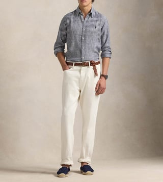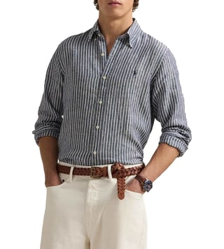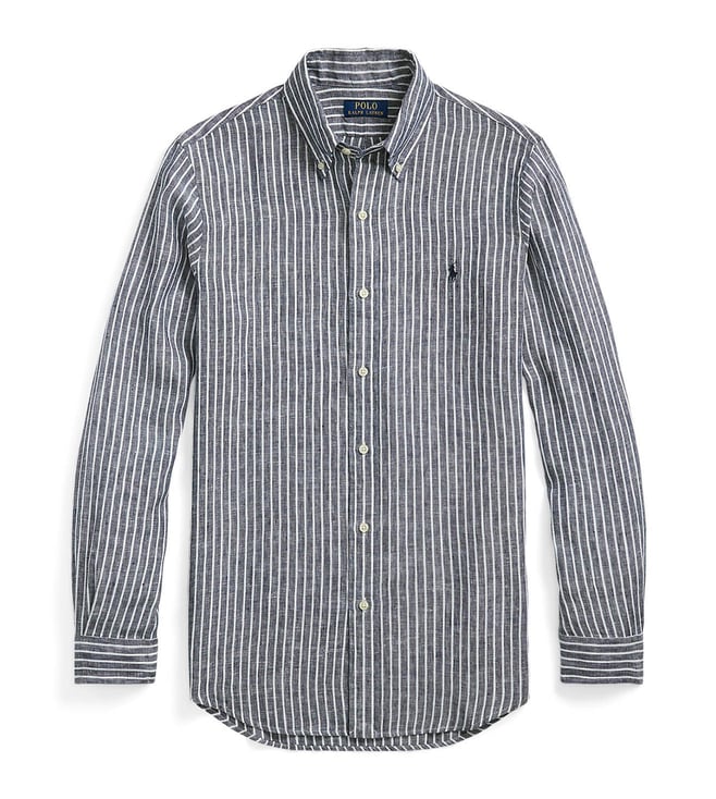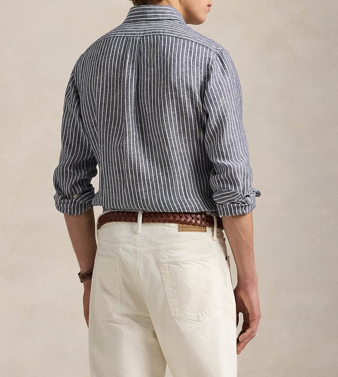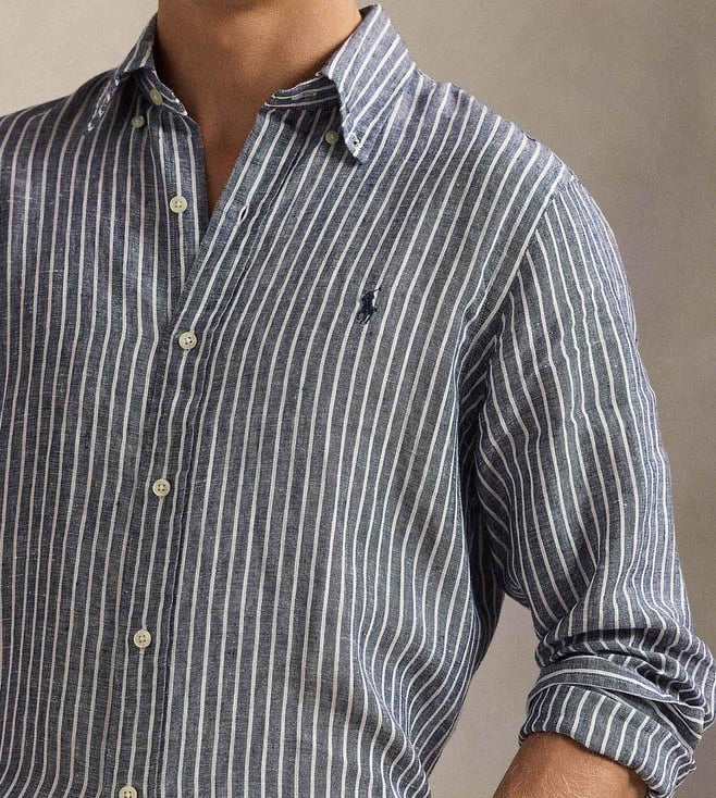 POLO RALPH LAUREN Men Navy Custom Fit Striped Linen Shirt