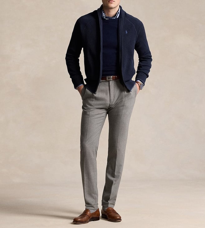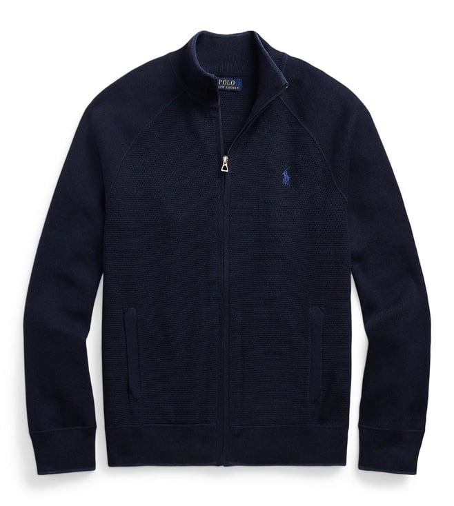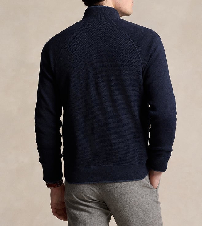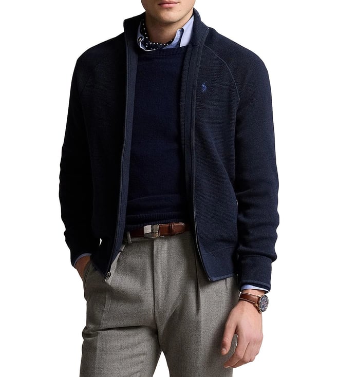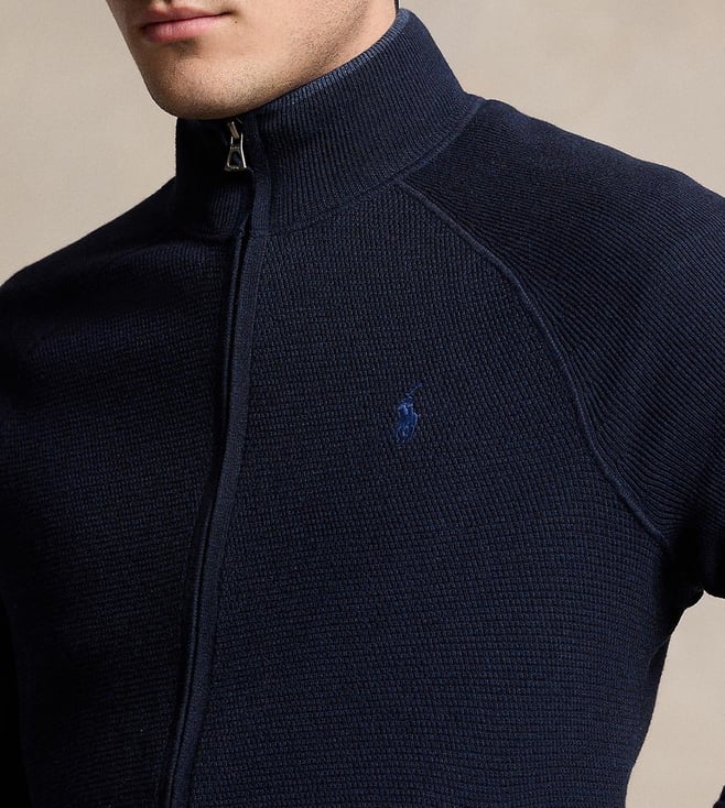 POLO RALPH LAUREN Men Navy Textured Cotton Full-Zip Sweater