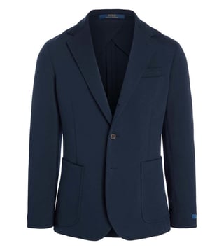The Polo Soft fit puts a modern spin on classic preppy style with a natural shoulder and half canvassed construction. This version offers the look of traditional tailoring with the comfort of a cardigan, thanks to its smooth double knit fabric.