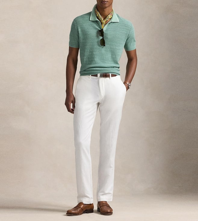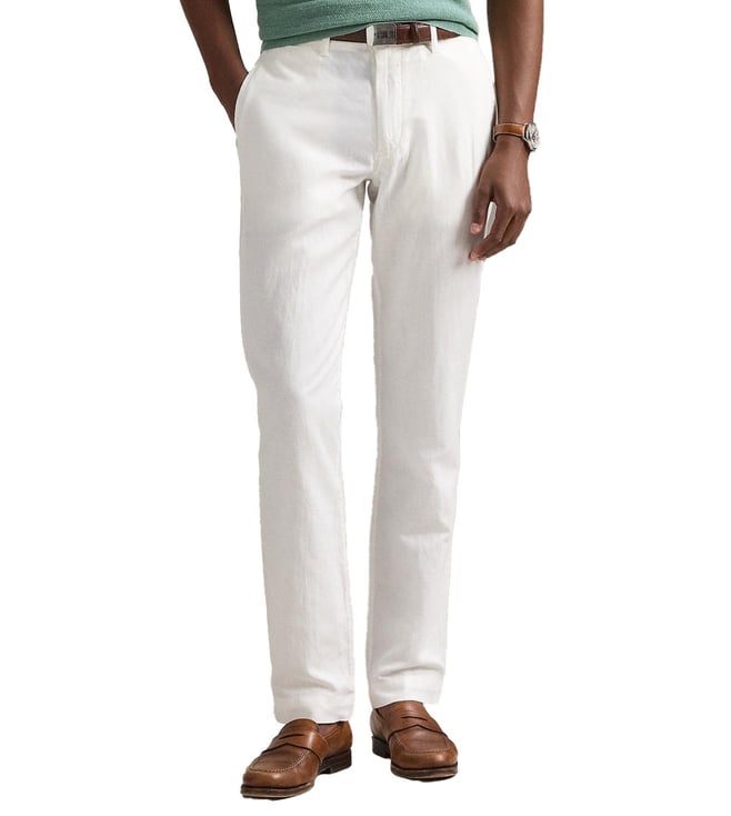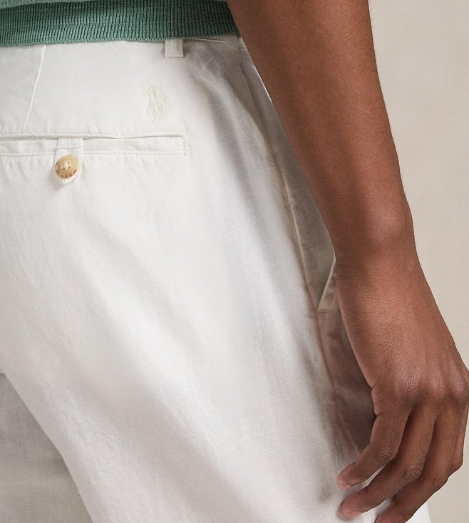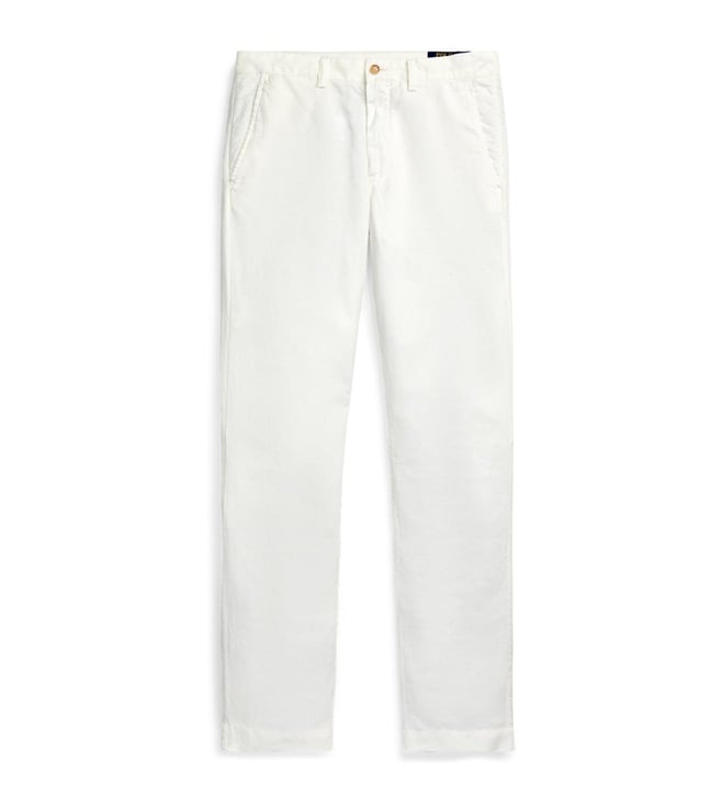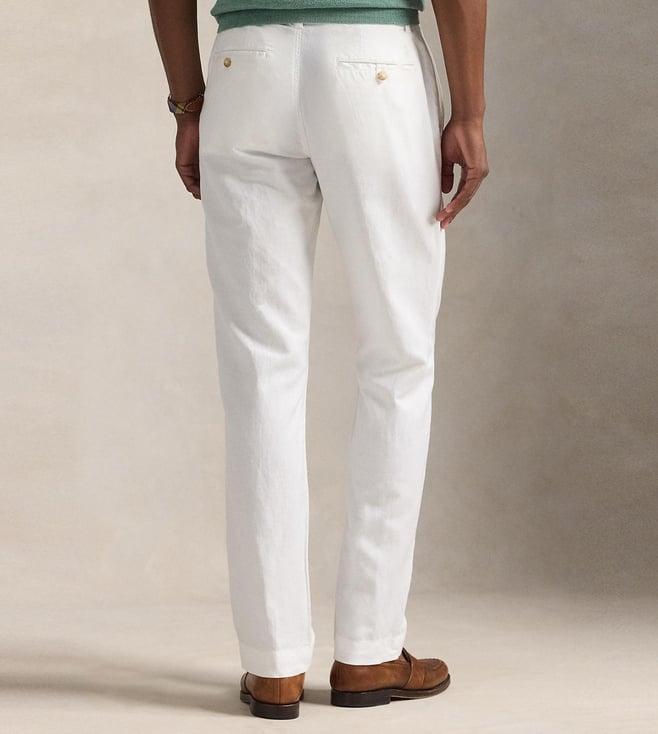 Polo Ralph Lauren White Straight Fit Linen-Cotton Pants