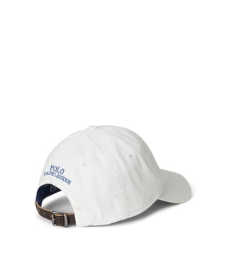 Embroidered with ralph laurens iconic polo bear, this cotton twill ball cap features a contrast underbill and a leather back strap.
