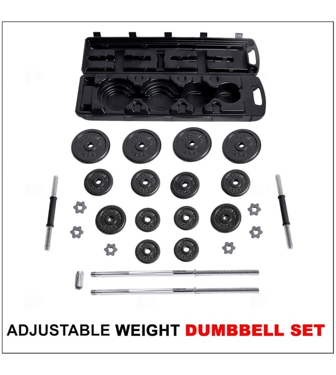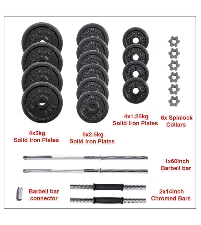 Elevate your home workouts with this dumbbells set from PowerMax. This versatile and robust dumbbell set is designed to transform your home gym experience, providing you with the tools you need to sculpt your muscles and achieve your fitness goals like a pro. This coated dumbbell and anti-slip rod set is the perfect addition to your fitness arsenal. The adjustable weight plates allow you to tailor your workout to various intensity levels, providing multiple options for different exercises. The bars are capable of bearing weight plates without any compromise.