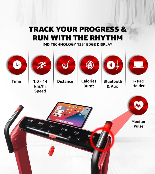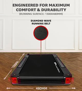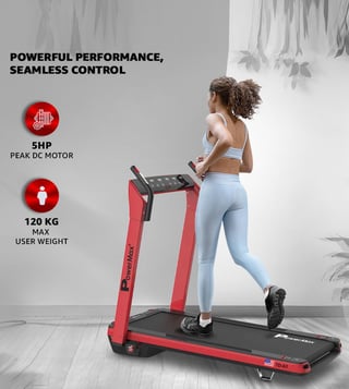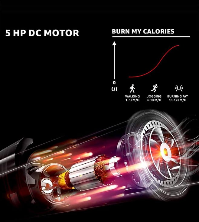 Powerful 5HP Peak DC motor built with AAA-grade parts ensures durability. High-quality hardware from ST Microelectronics, Fairchild, and BASF adds reliability. Run comfortably on a 1300x480mm area with a 6-ply orthopedic belt and PowerFlex Cushioning that cuts impact by 25%. Monitor your heart rate with a pulse sensor and 135¿ Edge Display. Connect to the FitShow app for smart tracking. Features 8 preset, 3 user, 3 target modes, 12-level auto incline, zero installation, foldability, and supports 120kg with 30kg buffer.