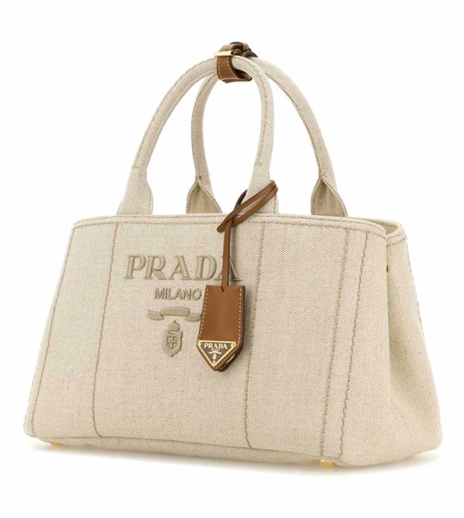 Expand the collection of your accessories in a trendy way with this bag from Prada. Its versatile design complements any outfit, making it an essential for basic and casual activities. Featuring sand, button closure, main compartment, front logo, dual carry handles. Products purchased from Darveys are supported exclusively by the warranty/exchange policies of Darveys and its partner boutiques. Brand owners and their channel partners are not responsible for exchange/warranty services for items purchased through Darveys.