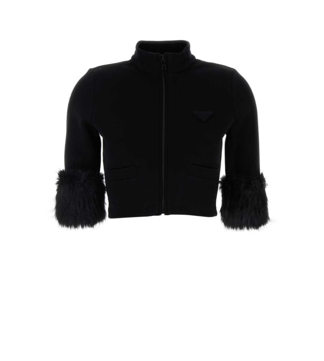 Prada Black Cropped Fleece Jacket