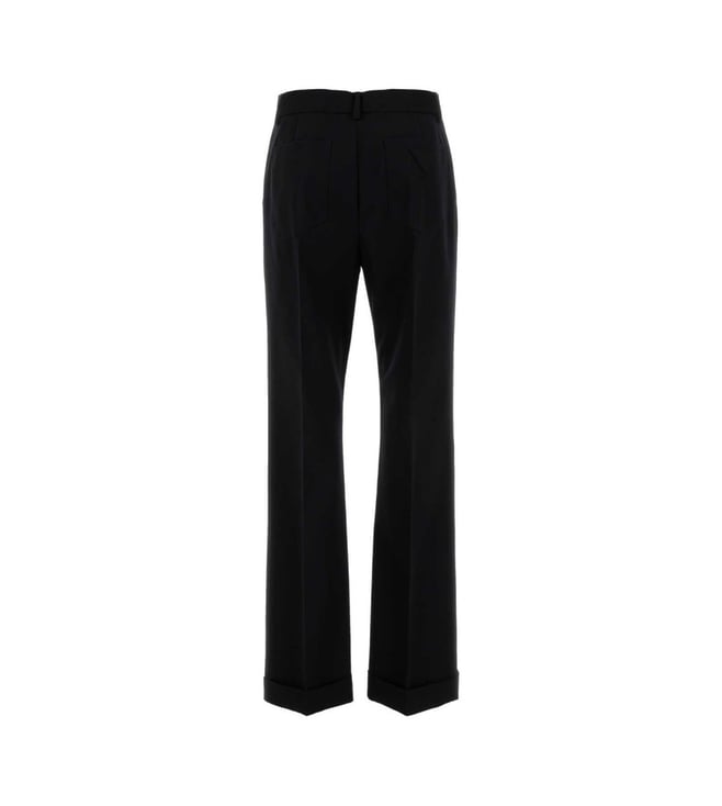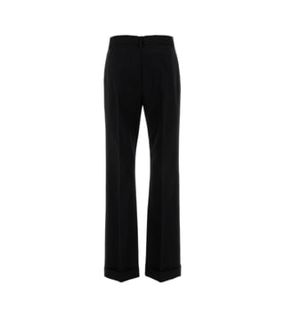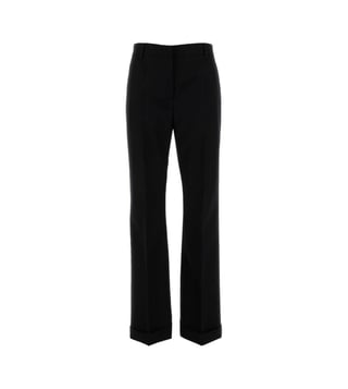 Elevate your wardrobe with the Prada Black Flared Trousers. Designed with belt loops at the waist, concealed buttons and single visible button closure, multiple pockets, central ironed pleats, slightly flared hemline. these trousers combine comfort and sophistication for everyday wear. Products purchased from Darveys are supported exclusively by the warranty/exchange policies of Darveys and its partner boutiques. Brand owners and their channel partners are not responsible for exchange/warranty services for items purchased through Darveys.