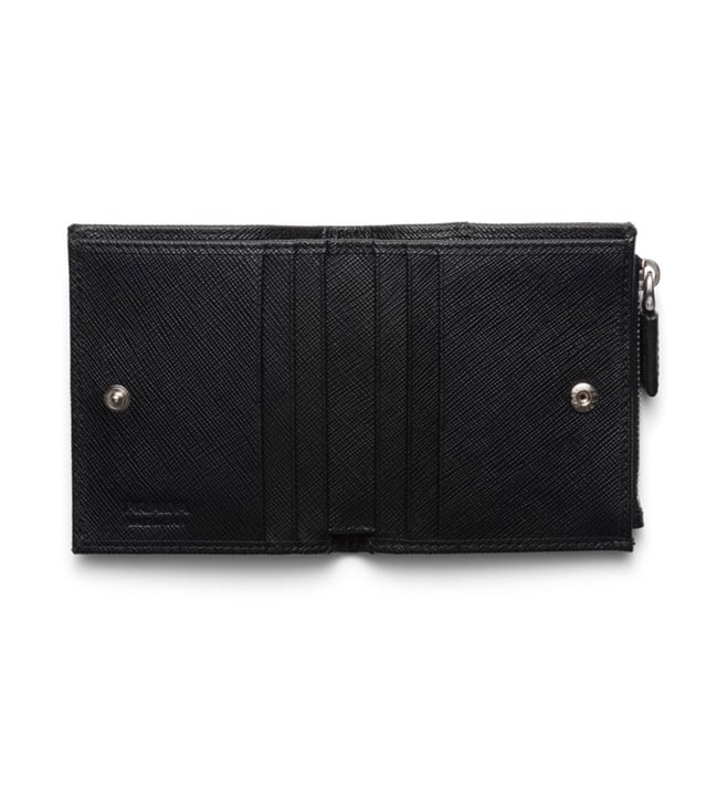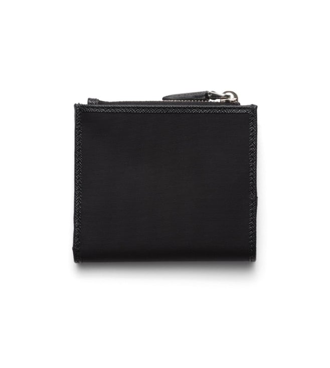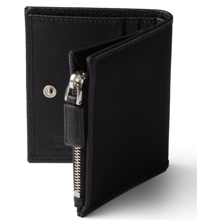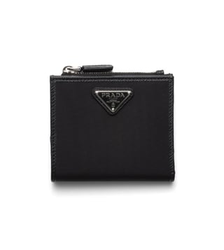 Sleek lines and classic re-nylon define this prada wallet. key details include a snap closure, enamelled metal triangle logo, four card slots, one bill compartment, two internal pockets and an external coin pocket with a zipper. Products purchased from Darveys are supported exclusively by the warranty/exchange policies of Darveys and its partner boutiques. Brand owners and their channel partners are not responsible for exchange/warranty services for items purchased through Darveys.