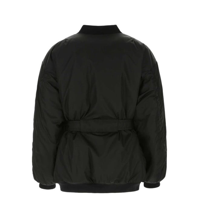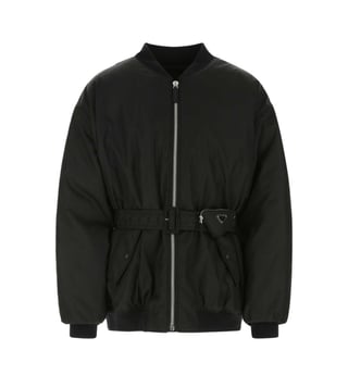 Elevate your style with the Prada Black Jacket. Reversible bomber jacket, long sleeves, smooth finish, front zip closure. Products purchased from Darveys are supported exclusively by the warranty/exchange policies of Darveys and its partner boutiques. Brand owners and their channel partners are not responsible for exchange/warranty services for items purchased through Darveys.