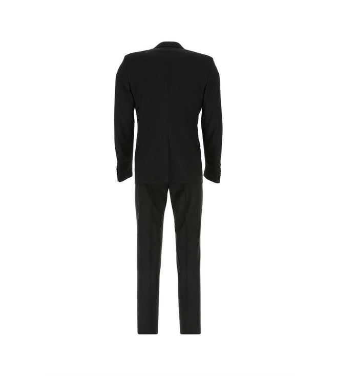 Elevate your style with the Prada Black Slim Fit Suit. Blazer: notched collar front button fastening long sleeves pockets trousers: slim cut pressed crease front button and zip fastening two side slit pockets two rear welt pockets. Products purchased from Darveys are supported exclusively by the warranty/exchange policies of Darveys and its partner boutiques. Brand owners and their channel partners are not responsible for exchange/warranty services for items purchased through Darveys.