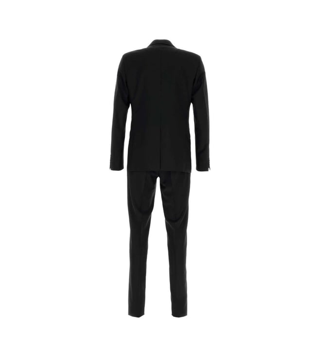 Elevate your style with the Prada Black Tailored Fit Suit. Single breasted, long sleeves, front button closure, zip fly, hook eye closure, belt loops, pockets. Products purchased from Darveys are supported exclusively by the warranty/exchange policies of Darveys and its partner boutiques. Brand owners and their channel partners are not responsible for exchange/warranty services for items purchased through Darveys.