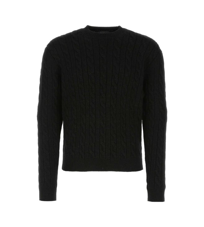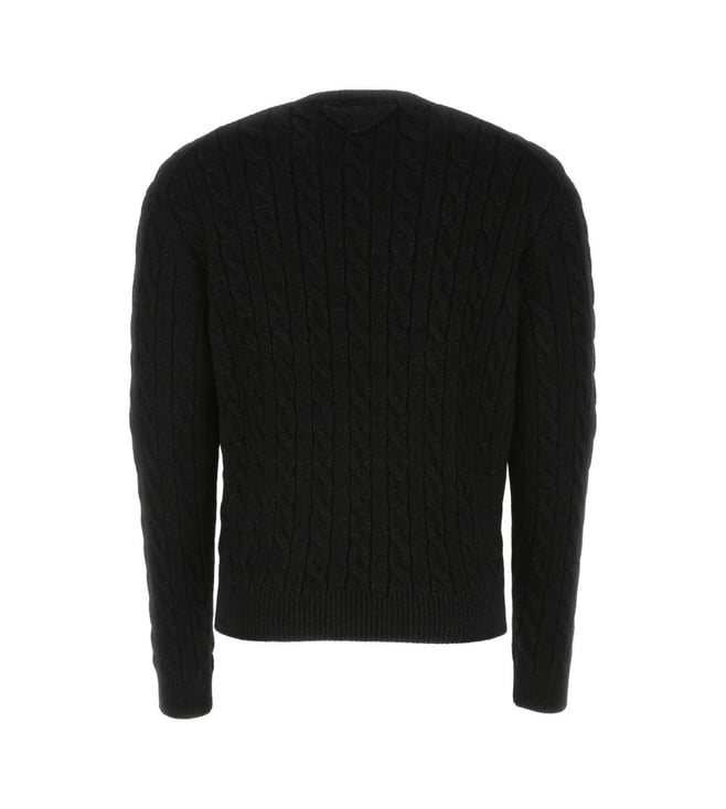 Elevate your style with the Prada Black Braided Sweater. Long sleeves crewneck pullover. Products purchased from Darveys are supported exclusively by the warranty/exchange policies of Darveys and its partner boutiques. Brand owners and their channel partners are not responsible for exchange/warranty services for items purchased through Darveys.