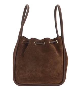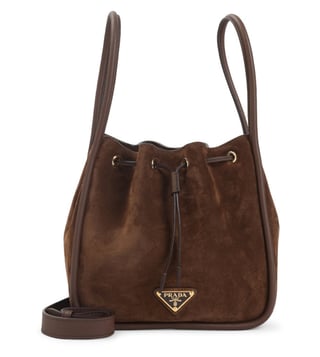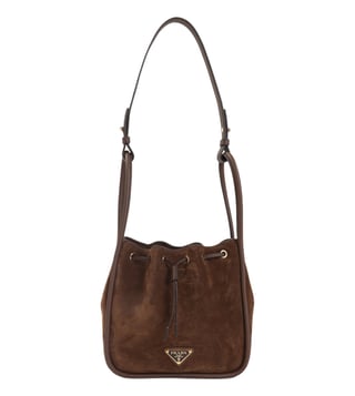 Expand the collection of your accessories in a trendy way with this bag from Prada. Brown leather handles detachable leather shoulder strap, metal hardware enameled metal triangle logo on the front leather drawstring closure logo-print with patch pocket. Products purchased from Darveys are supported exclusively by the warranty/exchange policies of Darveys and its partner boutiques. Brand owners and their channel partners are not responsible for exchange/warranty services for items purchased through Darveys.