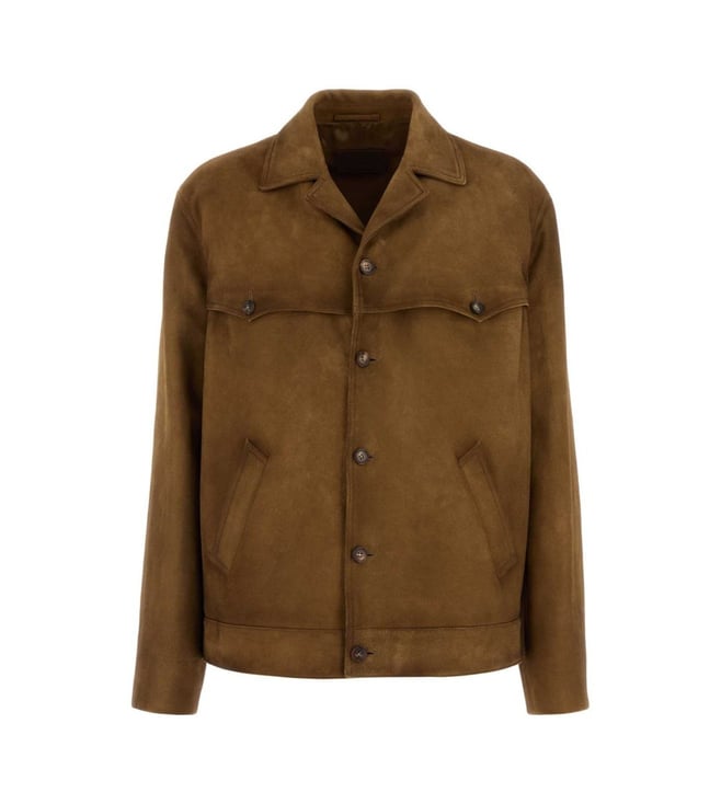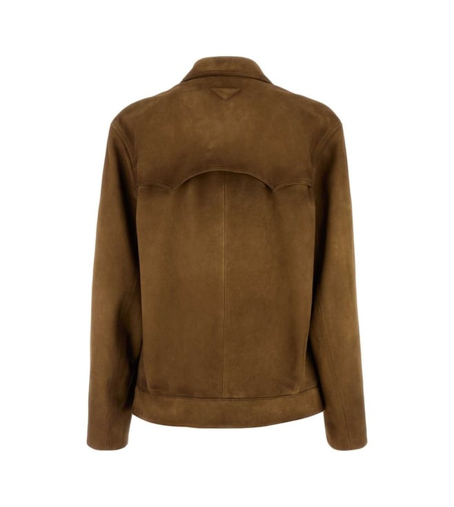 Elevate your style with the Prada Brown Jacket. Collar, long sleeves, front button closure, pockets. Products purchased from Darveys are supported exclusively by the warranty/exchange policies of Darveys and its partner boutiques. Brand owners and their channel partners are not responsible for exchange/warranty services for items purchased through Darveys.