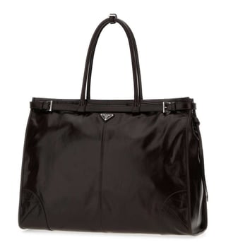 Prada Dark Brown Logo Large Tote