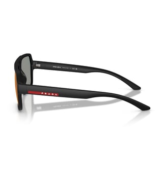 Update your accessory collection by getting this stylish pair of Sunglasses from Prada Linea Rossa. While the Black-toned Plastic frame lends a cool look to the sunglasses, the Blue colored Polycarbonate lenses guarantee the complete protection of your eyes. These sunglasses exhibit an excellent finish and are comfortable to wear. The Full Rim design further elevates its look.