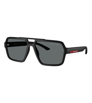 Look like a style icon wearing this pair of Sunglasses from Prada Linea Rossa. The Grey colored lenses are crafted using Polycarbonate that ensures complete protection of your eyes without compromising on style. Prepared with care using premium quality Plastic, the Black-tone frame is very light in weight and long-lasting. Besides, the Full Rim design adds to its look.