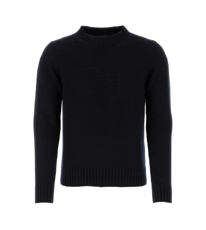 Elevate your style with the Prada Navy Sweater. Logo long sleeves crewneck pullover. Products purchased from Darveys are supported exclusively by the warranty/exchange policies of Darveys and its partner boutiques. Brand owners and their channel partners are not responsible for exchange/warranty services for items purchased through Darveys.