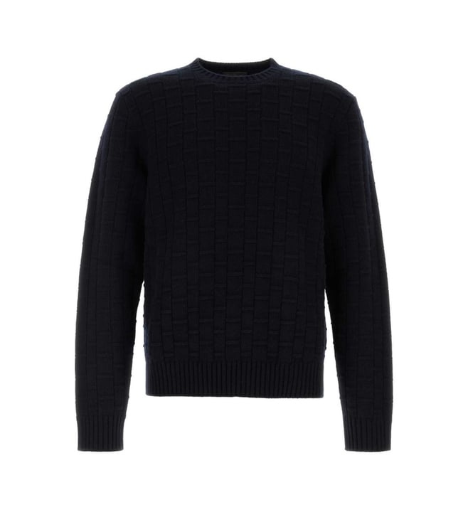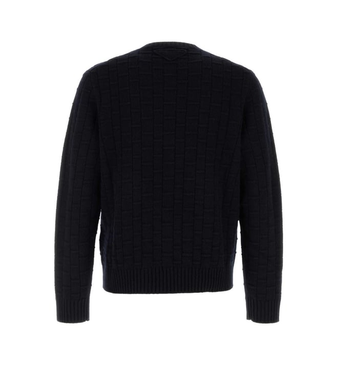 Elevate your style with the Prada Navy Blue Sweater. Crewneck, long sleeves, ribbed cuffs and hem. Products purchased from Darveys are supported exclusively by the warranty/exchange policies of Darveys and its partner boutiques. Brand owners and their channel partners are not responsible for exchange/warranty services for items purchased through Darveys.