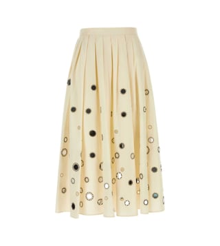 Elevate your wardrobe with the Prada Printed skirt. Designed with flared skirt, peculiar patches on the entire surface, concealed buttons and hook closure, these trousers combine comfort and sophistication for everyday wear. Products purchased from Darveys are supported exclusively by the warranty/exchange policies of Darveys and its partner boutiques. Brand owners and their channel partners are not responsible for exchange/warranty services for items purchased through Darveys.
