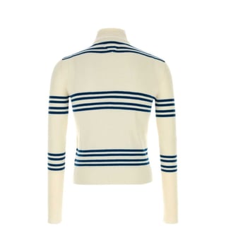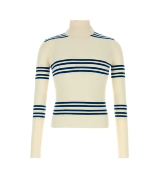 Elevate your style with the Prada Off White Striped Sweater. Turtleneck long sleeves ribbed texture striped pattern. Products purchased from Darveys are supported exclusively by the warranty/exchange policies of Darveys and its partner boutiques. Brand owners and their channel partners are not responsible for exchange/warranty services for items purchased through Darveys.