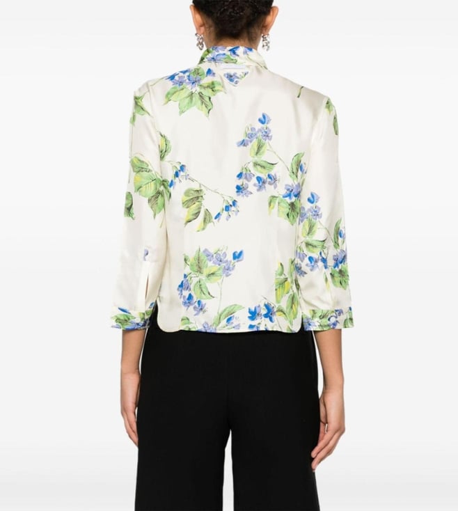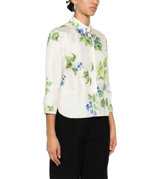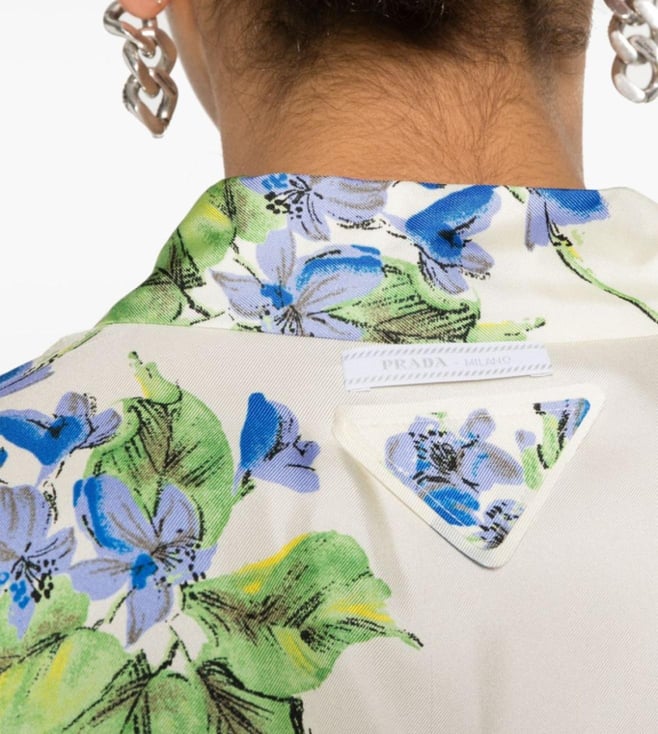 Elevate your wardrobe with this exquisite white floral-patterned casual shirt, crafted from 100% silk for a luxurious feel. The delicate blooms dance across the fabric, offering a touch of nature's elegance. Designed with long sleeves and a classic shirt collar, it exudes timeless sophistication. The button-down closure ensures a perfect fit, making it an ideal choice for both relaxed and refined occasions. Embrace the blend of comfort and style, and let your outfit bloom with grace.