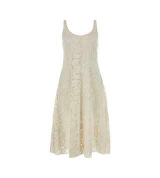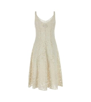 Embrace elegance with this enchanting white dress, a harmonious blend of comfort and style. Crafted with a luxurious fabric composition of 67% cotton, 11% metal, 6% polyamide, and 16% viscose, it offers a soft yet structured feel. The regular fit gracefully complements the sleeveless design, while the round neck adds a touch of classic charm. Adorned with a delicate floral pattern, this dress captures the essence of femininity. Perfect for any occasion, it ensures you shine with effortless sophistication.