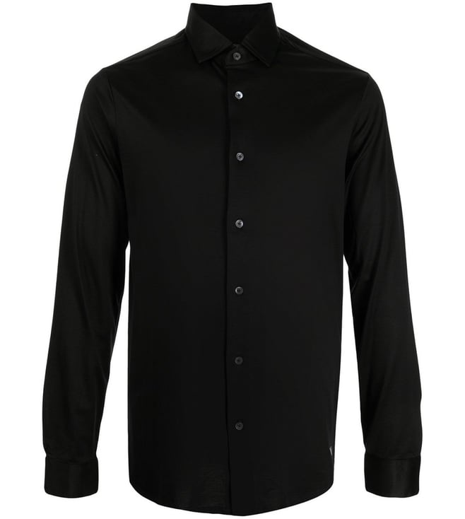Mens Black Button Down Collar Full Sleeve Solid Shirt