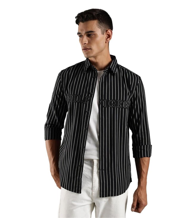 Black Cotton Regular Fit Striped Shirt