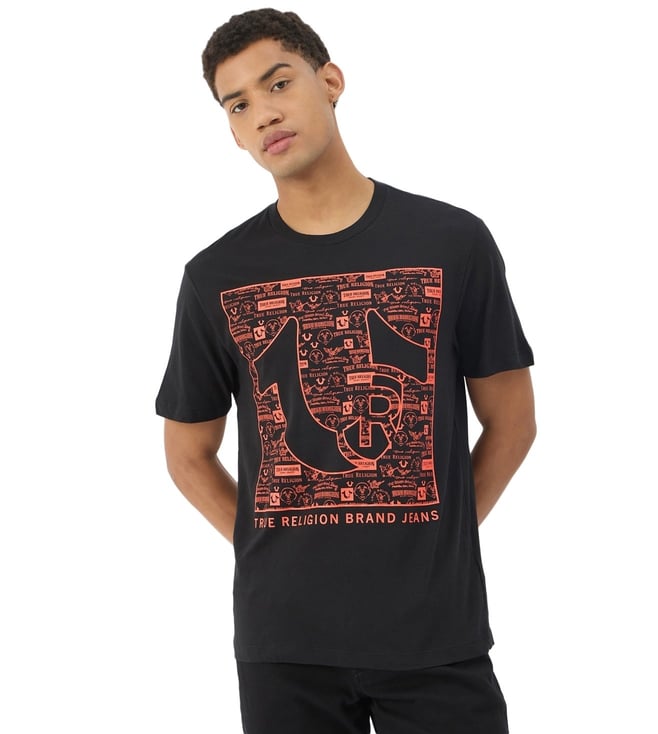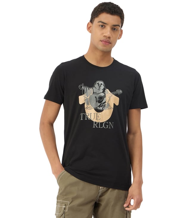 Black Pure Cotton Slim Fit Printed T-Shirt