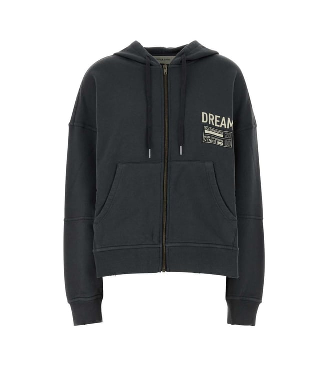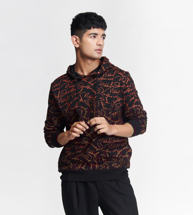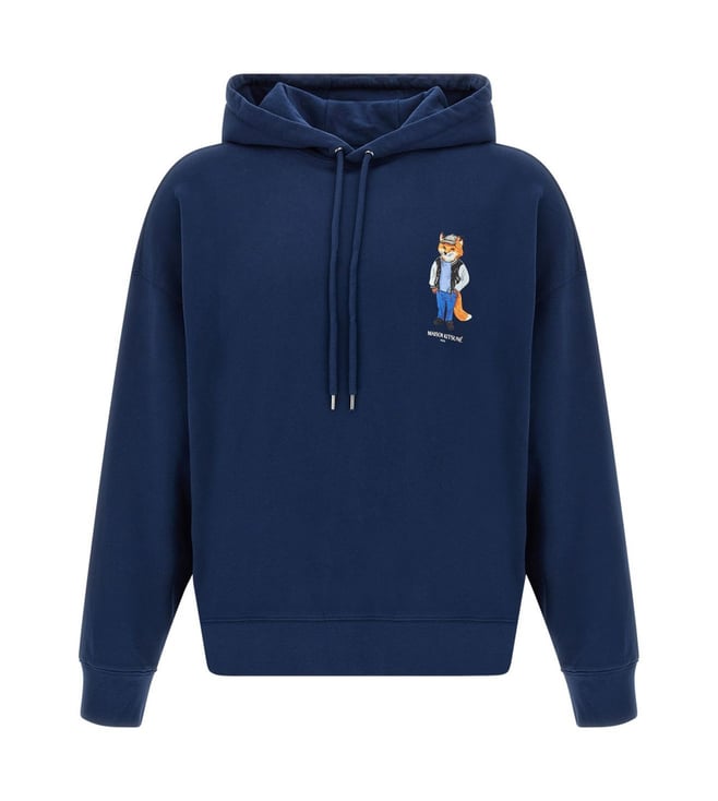 Men Mid Blue Printed Regular Fit Hooded Sweatshirt