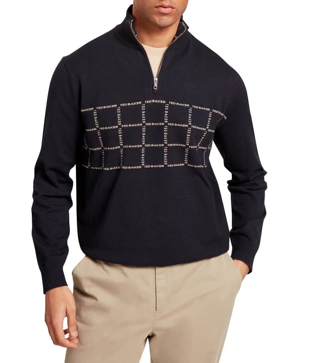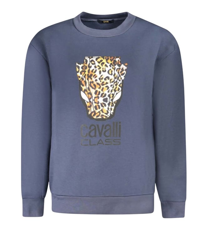 Navy Blue Printed Logo Regular Fit Sweatshirt