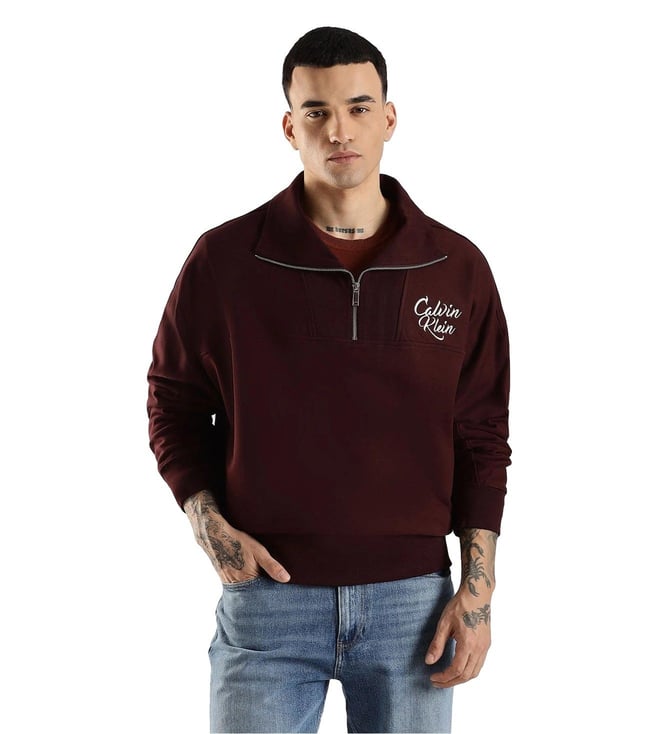 Maroon Cotton Comfort Fit Logo Printed Sweatshirt