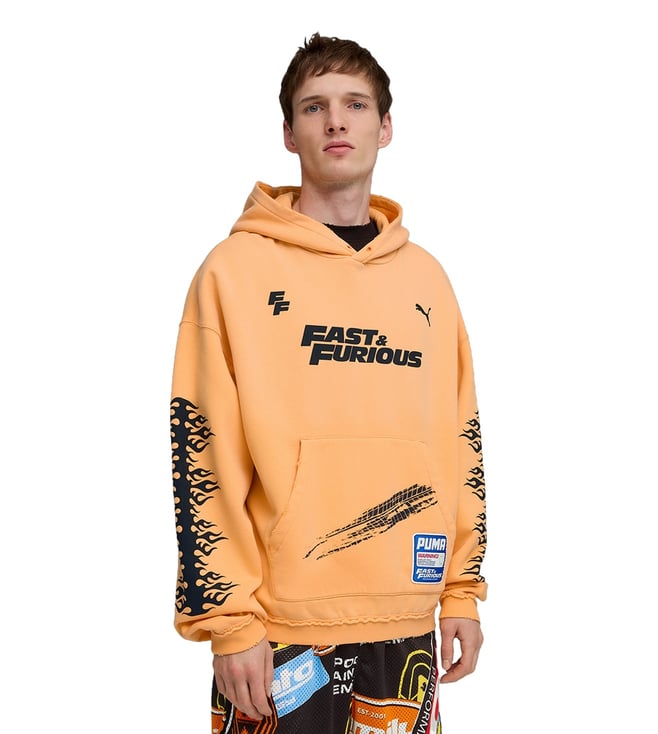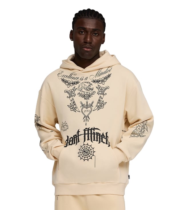 Brown Cotton Loose Fit Logo Printed Sports Hoodie