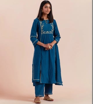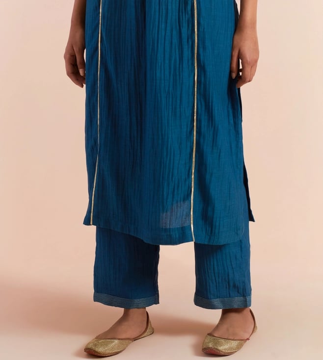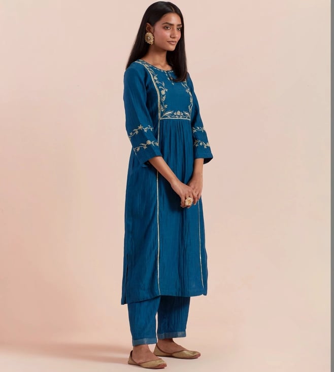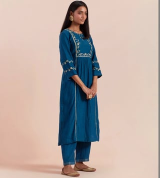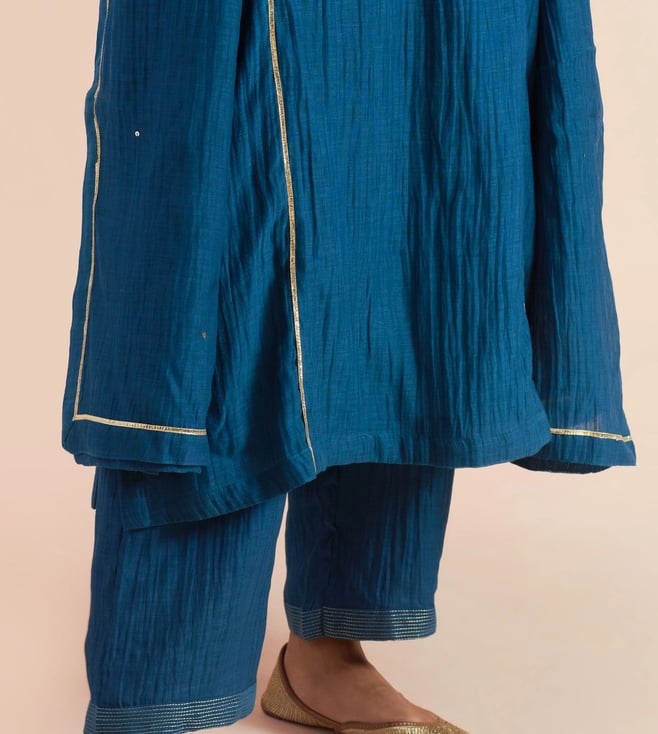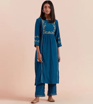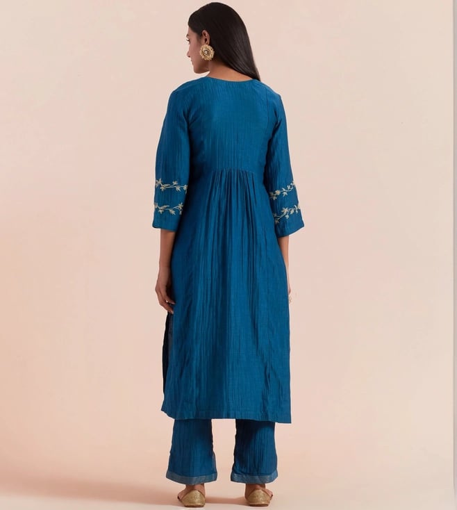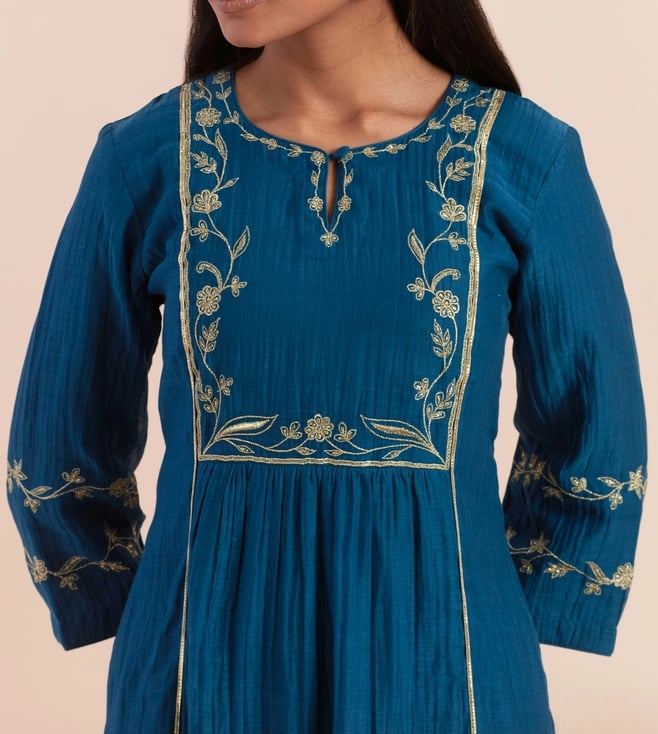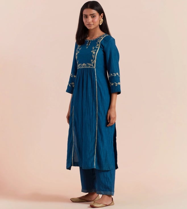 Priya Chaudhary Dark Blue Tyohar Embroidered Chanderi Silk Kurta