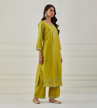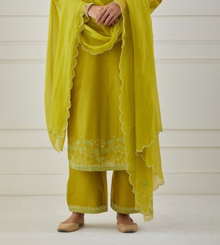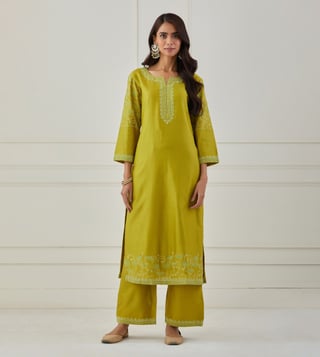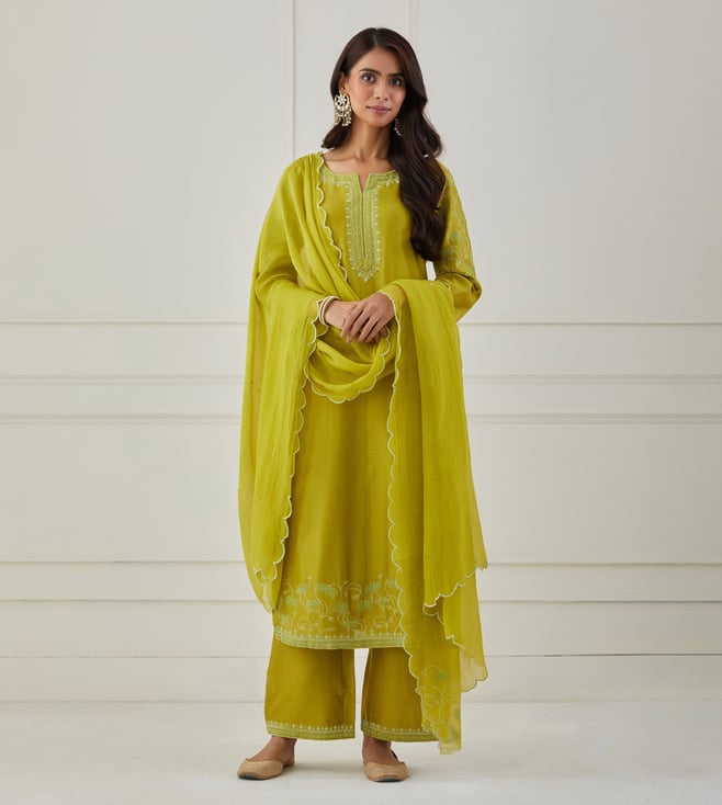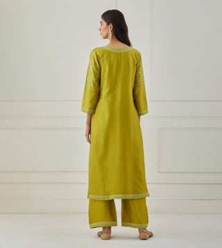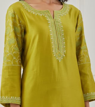 Priya Chaudhary Lime Green Bandhan Embroidered Chanderi Silk Kurta