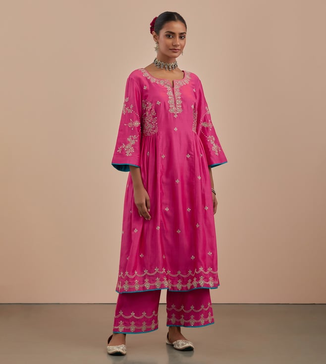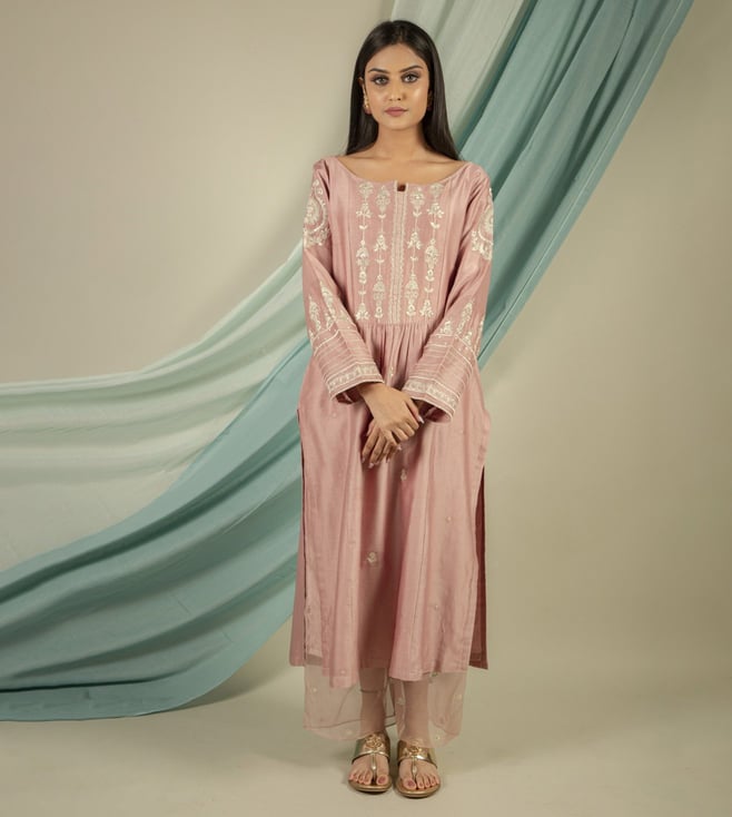 Dust Pink Leela Embroidery Chanderi Silk Kurta