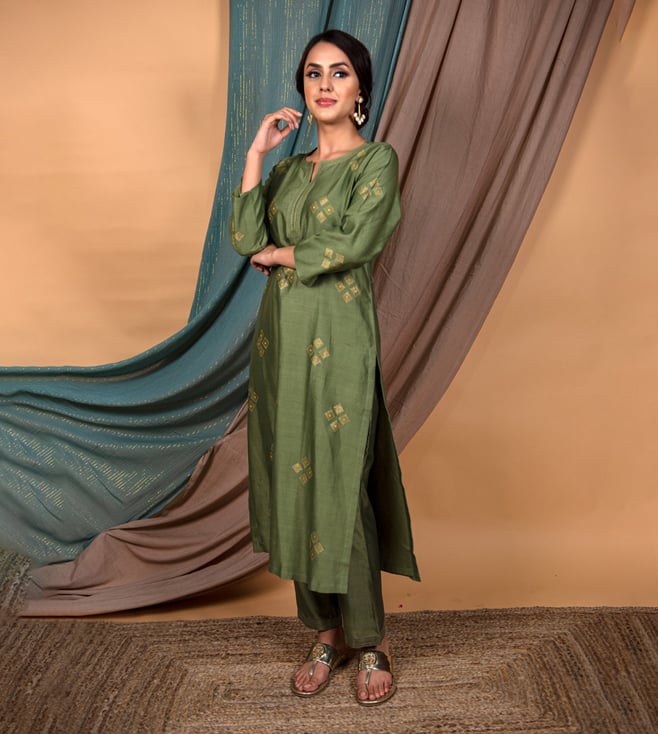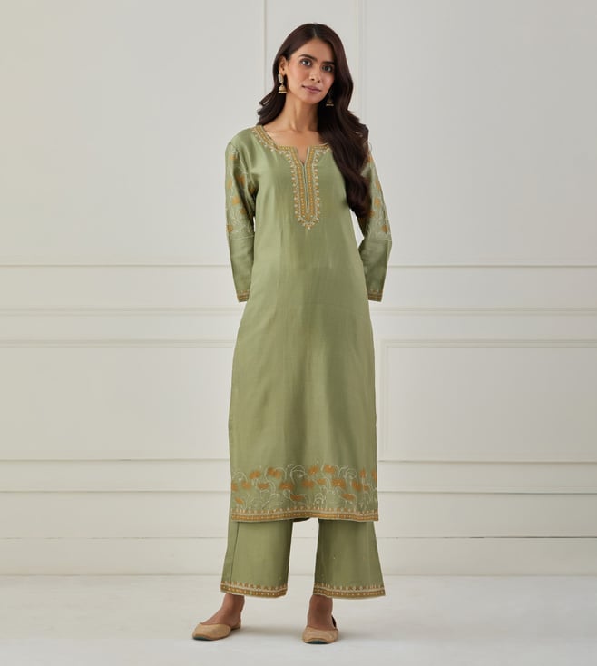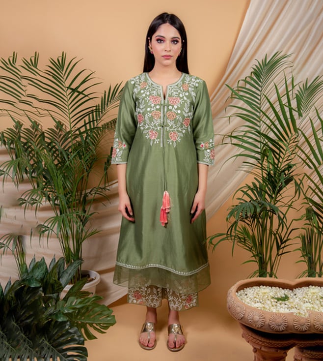 Olive Green Meera Embroidery Chanderi Silk Kurta