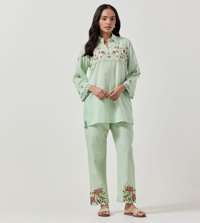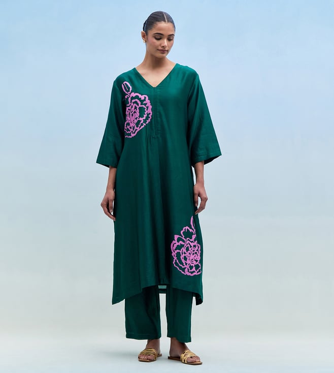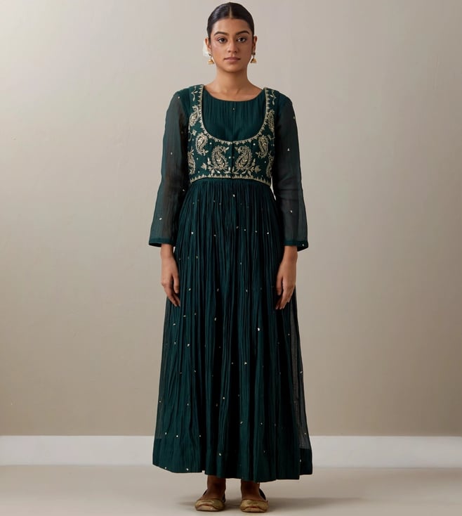 Green Bandhan Embroidered Chanderi Silk Kurta