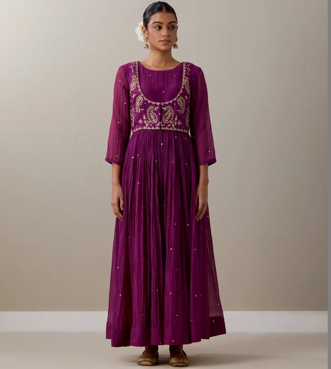 Maroon Meenu Chanderi Silk and Cotton Kurta