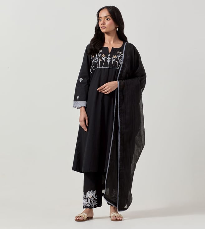 Teal Blue Jahan Embroidered Chanderi Silk Kurta