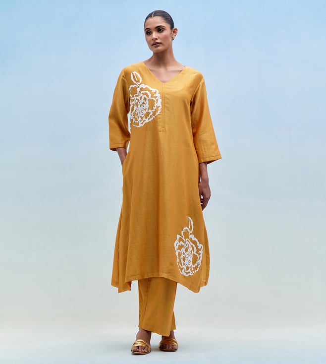Mustard Rumi Hand Embroidery Cotton Kurta