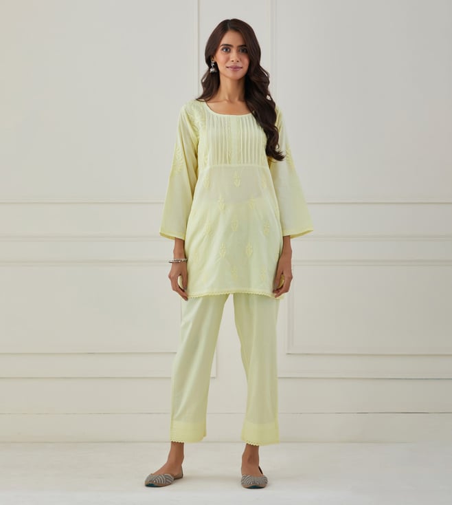 Yellow Neer Chikankari Cotton Kurta