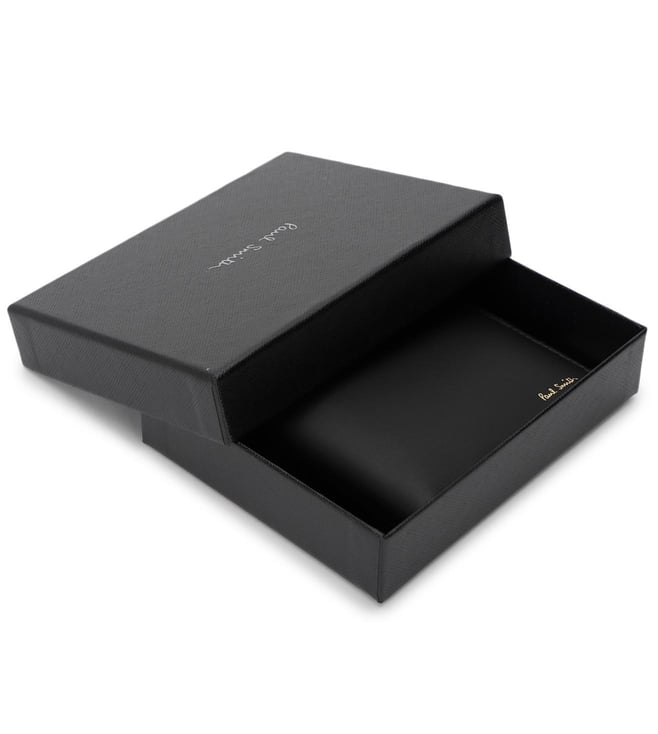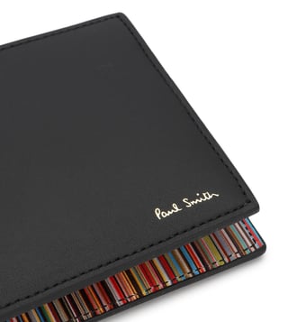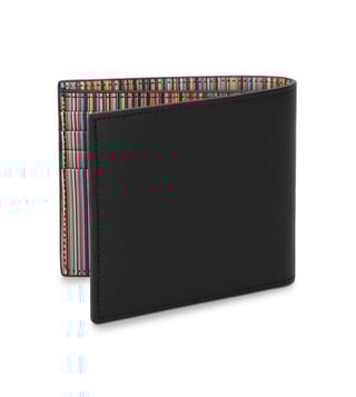 A pop of surprise awaits inside this black bi-fold wallet from PS By Paul Smith. While the outer sports a sleek, solid finish, the inside reveals the brand's signature colourful stripes. Designed with multiple card slots and a bill compartment, it keeps your essentials organised in style. Style it best with any casual or evening outfit. Paul Smith is synonymous with classic British tailoring and style. What began as a comic strip drawing on a T-shirt evolved into the iconic Zebra, now a signature logo across the brand.