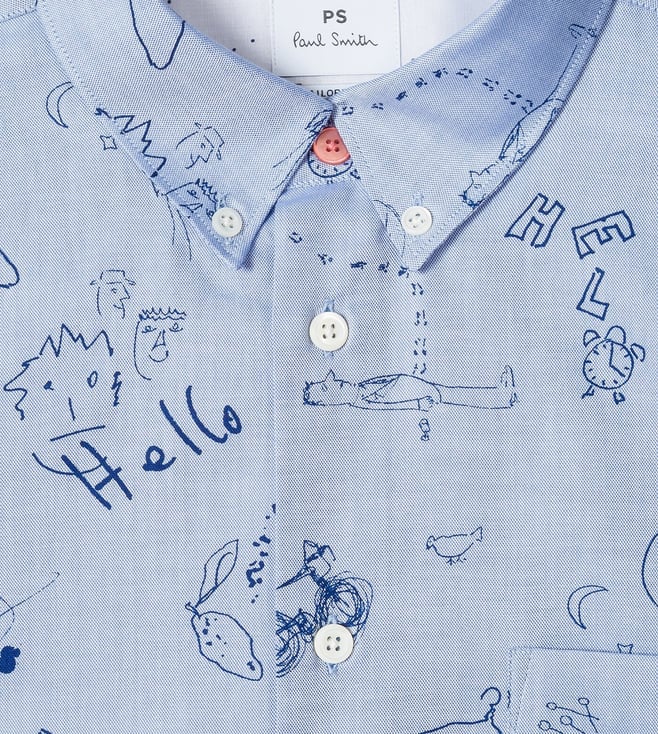 PS Paul Smith Turquoise Tailored Fit Printed Shirt