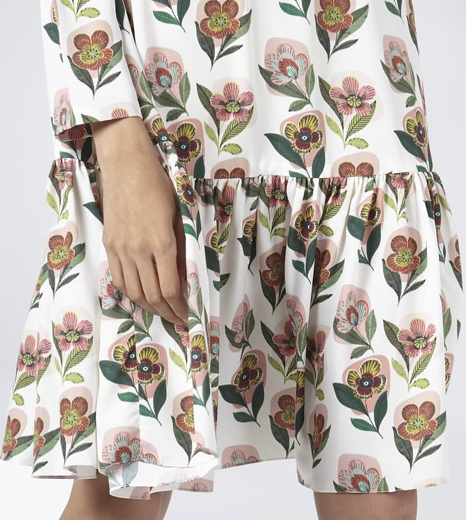 Dazzle the onlookers with this cream tunic from PS Pret by Payal Singhal. The round neck adds to its appeal. Exuding full sleeves, it is sure to fetch you compliments from all. The printed pattern makes it a captivating choice. It has been crafted with care from crepe fabric and assures utmost comfort.