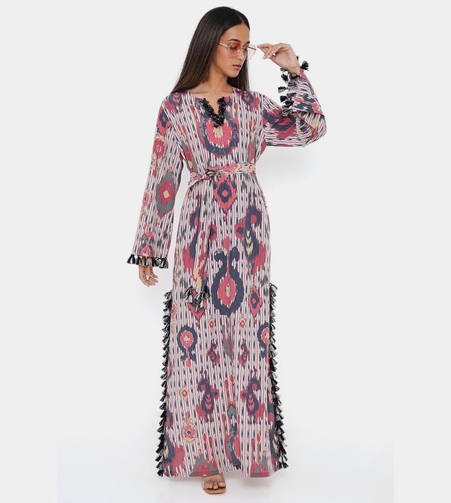 PS Pret by Payal Singhal Red Ikat Tribe Print Art Crepe Long Beyza Kaftan