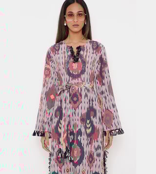Give yourself a modish look with this kaftan. Tailored to sartorial perfection from art crepe, it assures a soft and soothing touch against the skin. Disclaimer: Product colour may slightly vary due to photographic lighting sources. Country of Origin - India.