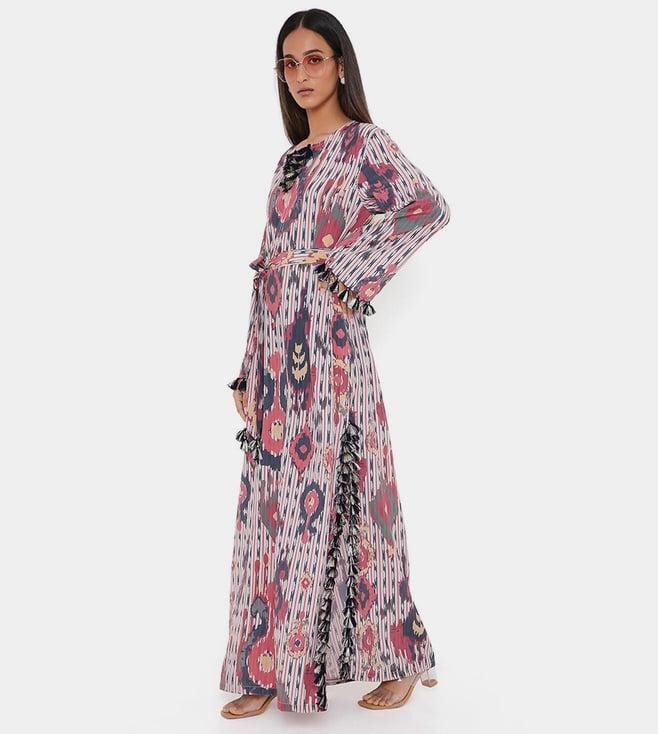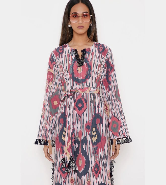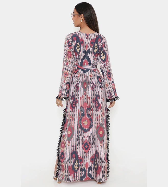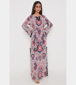 Red Ikat Tribe Print Art Crepe Long Beyza Kaftan