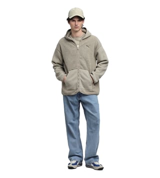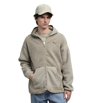 Puma Beige Essentials Elevated Relaxed Fit Full Zip Hoodie